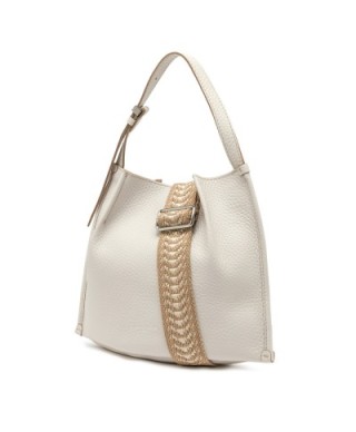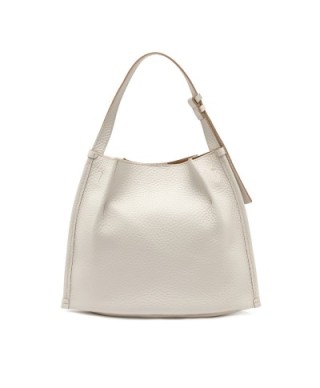 Borsa in pelle double grana maxi sabbia naturale, chiusura con bottone con magnete,caratterizzata da due pence sui quadranti
