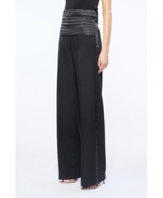 Pantalone nero in lana vergine gamba ampia, vita alta, cinturino alto in seta in tono,gamba ampia , banda laterale in seta ,tasche a filo laterali, accessorio cintura in seta modello panciotto