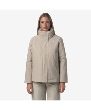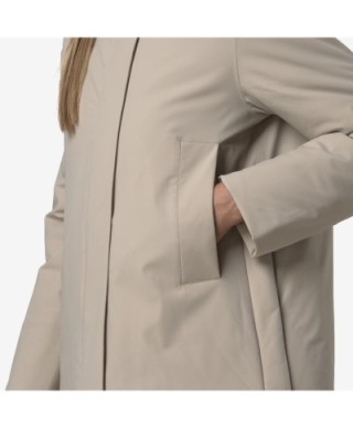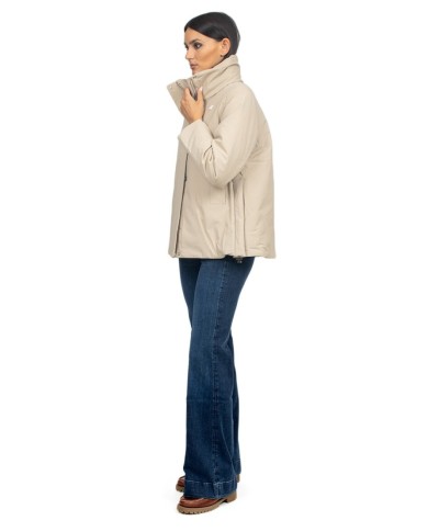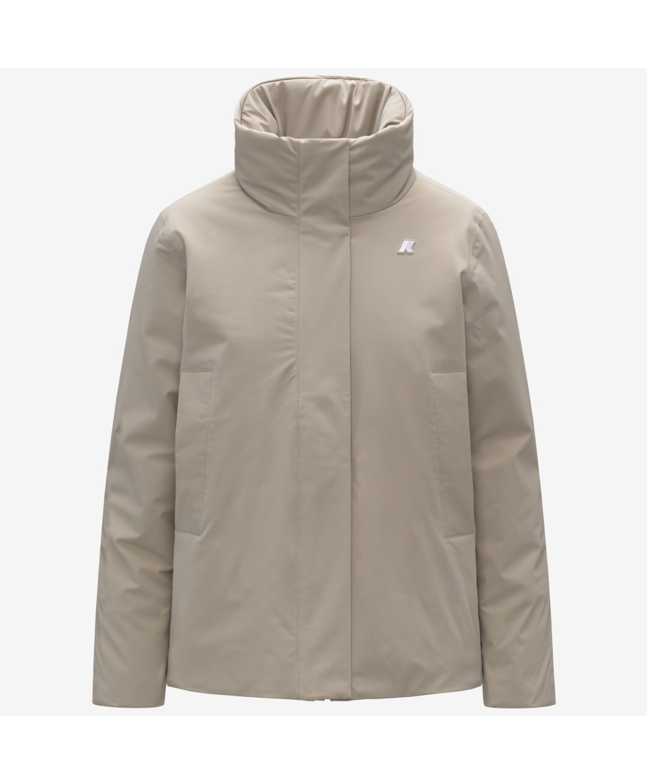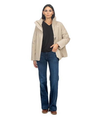 Piumino beige tessuto impermeabile e antivento,zip a doppio cursore,fodera in tessuto lucido,imbottitura ovatta, cuciture termonastrate, chiusura con zip coperta dalla patta ,polsini con ghetta interna